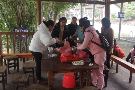 10:30分,我們正式抵達(dá)目的地“竹泉島山莊”,大家紛紛參與到午餐的準(zhǔn)備活動(dòng)中,生火、穿菜、刷油、配料、烤串……,大家紛紛施展各自拿手絕活,忙得不亦樂乎,不一會(huì)大家親手烤制的肉串就飄出陣陣誘人的香氣。太陽很應(yīng)景在此刻從云層中鉆出,金色的光芒透過樹蔭照在每個(gè)朝氣蓬勃的笑臉上。